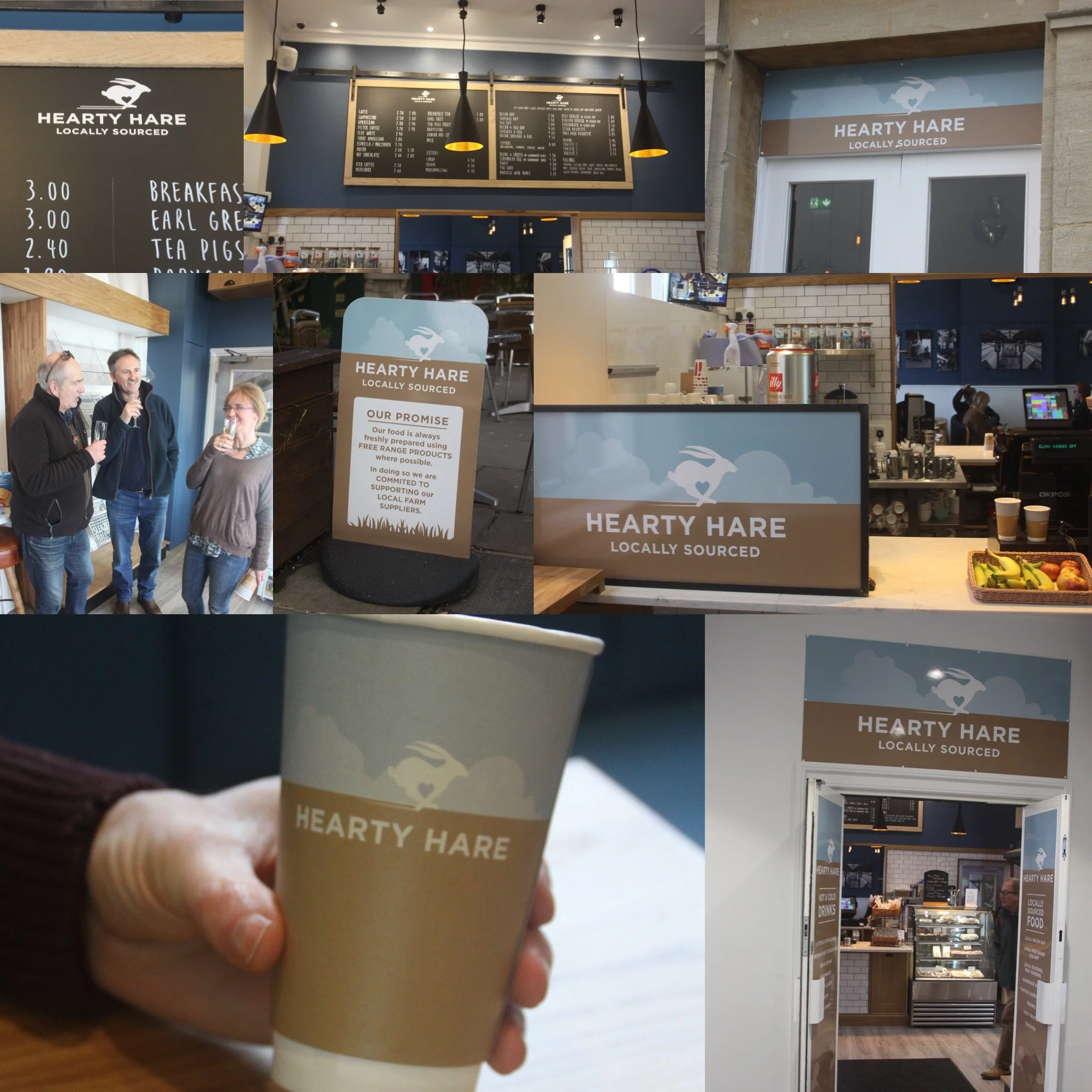 Rachel wanted the new branding for her cafe to be distinctive from the usual quick pit stops to find in train stations. As well as transient customers Hearty Hare is well used by the local community and warmly welcomes a number of customers who visit most days. The signage needed to reflect the traditional values Rachel embraced while still feeling fast and efficient. The racing hare was born and the monica to go with it.